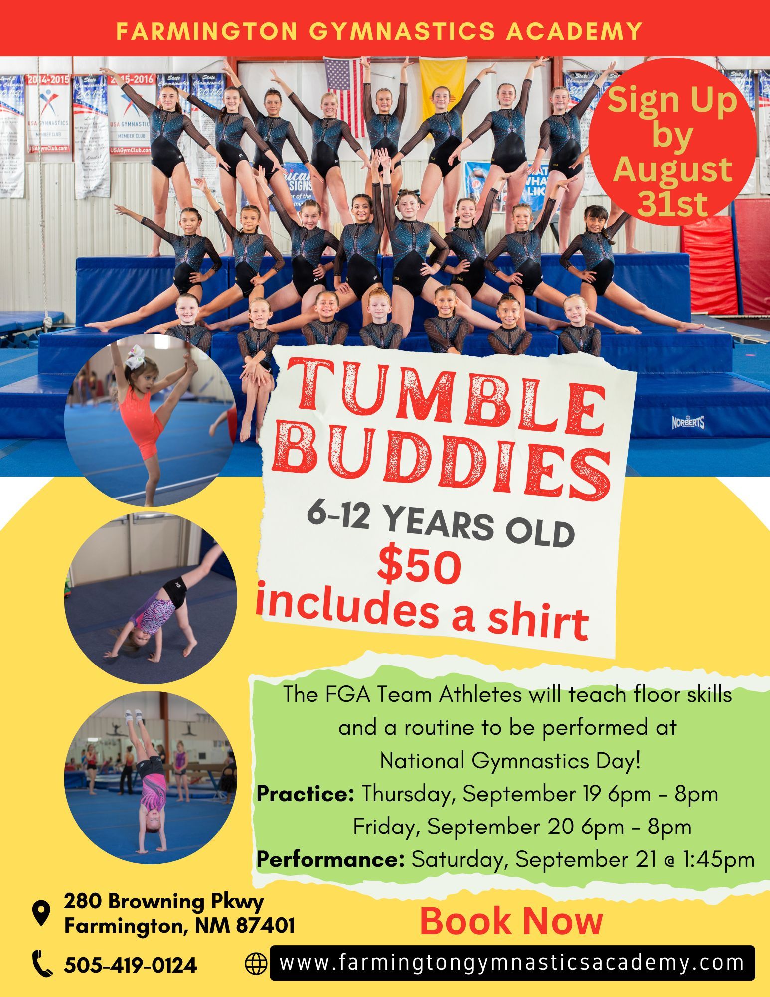 The FGA Booster Club will be hosting Tumble Buddies this year to earn funds to benefit the Competitive Team. Tumble Buddies is an exciting opportunity for your child to learn from our Competitive Team athletes. They will learn skills and a routine to perform at our National Gymnastics Day event, held September 21st!